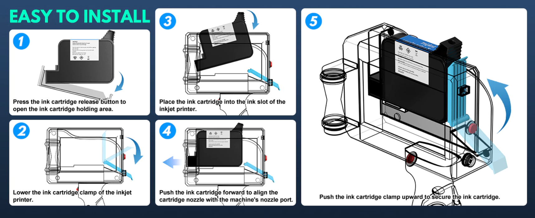 Ink Versatility:Choose from multiple ink colors and types, including fast-drying, water-based, and oil-based options.